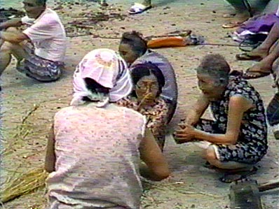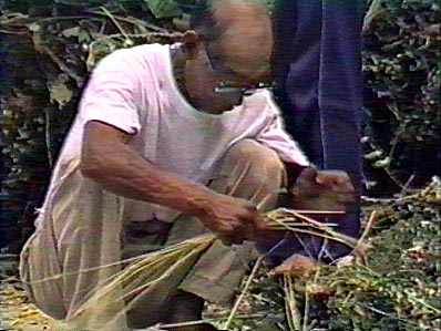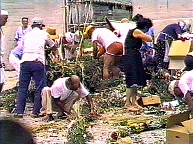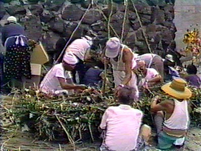 【2】花束を結ぶ荒縄も大勢で作り終えました。