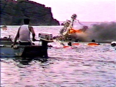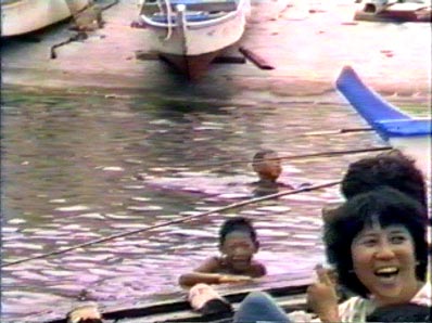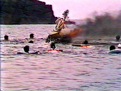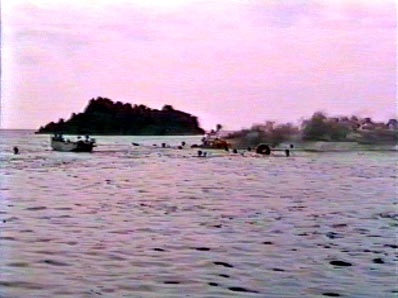 | 【71】【72】安全のため、伴走船がサポート 子供たちが途中まで浮き輪でついて行きます。 |