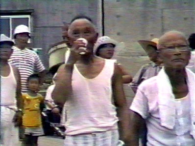 | 【49】コップ酒で立っているのはキンジロウ爺さん?その後ろ隠れているのは一八さん、その後ろは奥さんキミさん |