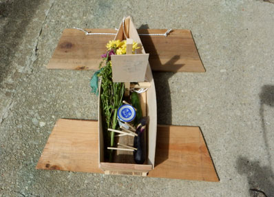 | 集落内、放送で「台風接近でしょうらいさんは中止とします。ここでの対応をお願いします」と集落の放送があり、急いで簡単な小さなしょうらいさんをつくりました。 |