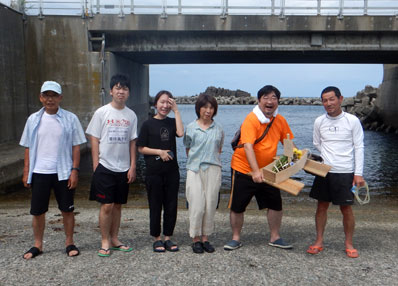 海は台風の影響は無く、穏やかな状態です。風は台風が沖にいますので西風が吹いています。ゲンネム家ファミリーです。 |