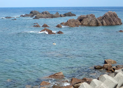 護岸のテトラを越えたところで、放しました。西風で流れて行きます。