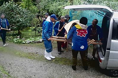 【118】担ぎ役の一利さん 疲れましたか?肩は痛くないですか? |