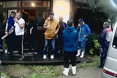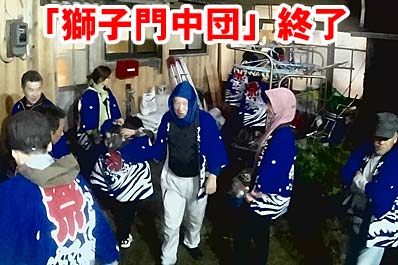 | 【113】ゼンシロウ家 「獅子門中団」最後の門付けです。 | 【114】皆さん、天気の悪い中、よう頑張りました |