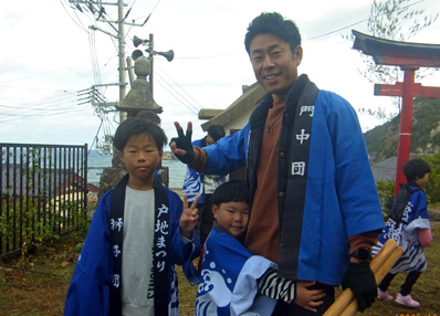 今年は晴天で風も無い絶好の祭り日和でした ●「獅子」はゴンザ家ファミリーが5人、ヨウジロウ家子供2人、ジンゴロウ家子供、キンジュウロウ家子供、サンシロウ家子供、ゴンジロウ家子供等が参加で盛り上げてくれました。 ●「太鼓」は小さな子たちが練習に参加され、将来を担ってくれそうです。女性の方も参加され、将来は女性中心の「太鼓」になりそうです。 本番は表太鼓に和幸(帰省 ショウベイ)、祐子(ジンシロウ)、均(ゼンシロウ) 裏太鼓に晴雄(ロッケム)、幸伸(帰省 シンネム)、義孝(ヨウジロウ)、歩(キンジュウロウ)、松本夫人(ジンベイ家購入者)等がデンデコデンデン・・を響かせてくれました。 「豆まき」はタエム家の和豊さんが心のこもったダイナミックな舞いを一人で全戸をカバーしました。 ●昨年は白刃は演者がおらず、獅子、太鼓だけで戸地祭りとしてはさびしい祭 りでしたが、今年は大坪建さんの子供で大坪刀我(トウガ)君(サンシロウ家久子さんの曾孫)が先輩、野ア健司さん(ジンジュロウ家)等の指導を受け、練習を重ね、「受け」デビューしました。また、ジンゴロウ家の龍城君(小2)もおじさん隆利さんの指導で練習開始、近年デビューするでしょう! 当初、「白刃」演者は「切り」健司さん、「受け」刀我さんの二人が頑張って全戸の門付けをするよていでしたが、ジンゴロウ家の越前隆秀さん、隆元(タカヨシ)さん兄弟、ベテランの(ジンタロウ家)の金津富士夫さん、(インキョ家)大坪準一さん、又、(キンジュウロウ家)の和田直哉さん等が参加しました。 「白刃」演技は「半棒」「小薙刀」「大薙刀」「陣鎌」「大棒」はやらず、それらの一部「山河」「かるぎ」「下段」のみで進行しました。 |