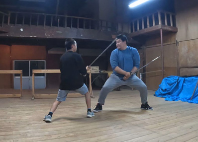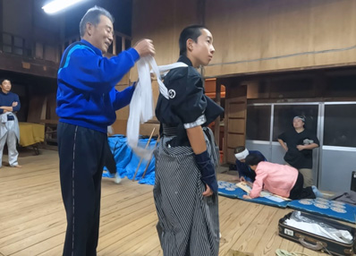 | 【13】【14】先輩指導教官の健司さん 初めての本番装束で遠し稽古をします。健司さんの細かな指導もあって完璧な仕上がりです。 さらに「半棒」「小薙刀」「大薙刀」「陣鎌」「大棒」と修練を期待してますよ。 |