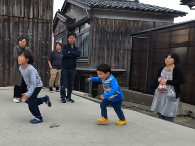 【124】サミジロウ家での「獅子」が終わり、空き地で運動会状態の子供たち |