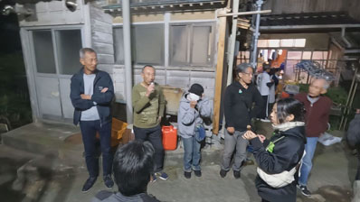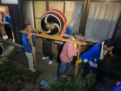 【132】後、残り2軒です。気温が下がり、寒くなってきました。 担ぎ手:前→直人さん 後ろ→健作さん |