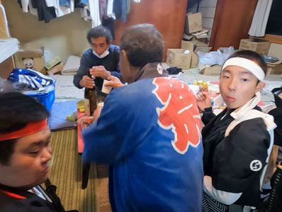 | 【131】さあ、太鼓が最終門付けのゼンシロウ家に着きました。 |