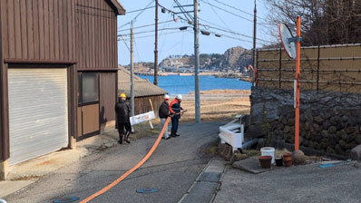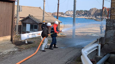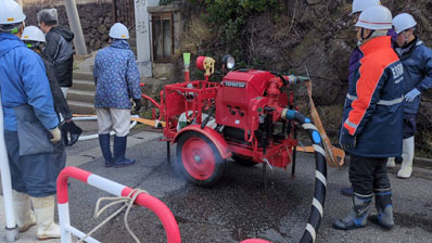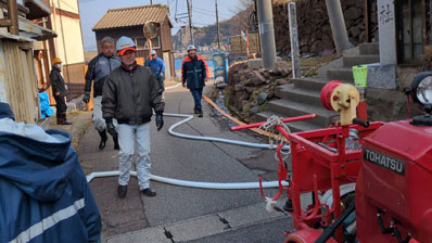 年明けの寒波、2月7〜8日の寒波が過ぎ、少し寒さがゆるんだ2026年2月14日(日)に集落の消防訓練が実施されました。